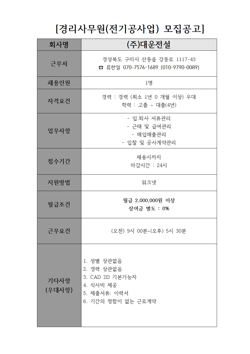 (주)대운전설