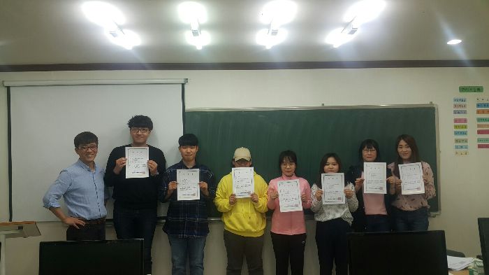 구미경님 자격증 시험 100점 기념 수료자 대표로 수료증 받으셨습니다!