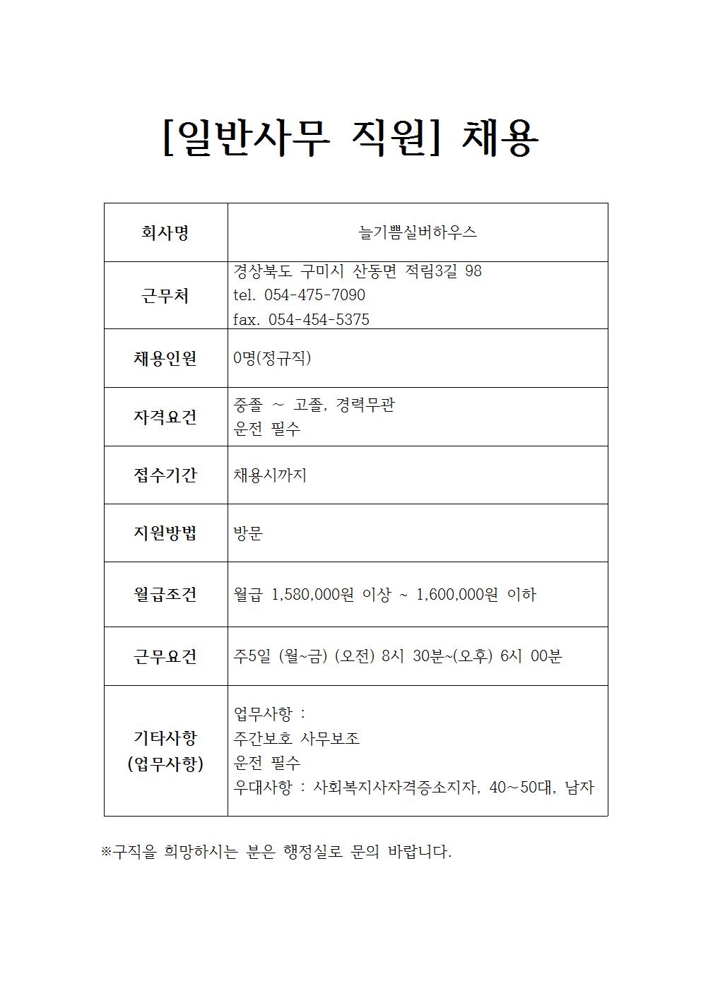 늘기쁨실버하우스 채용정보