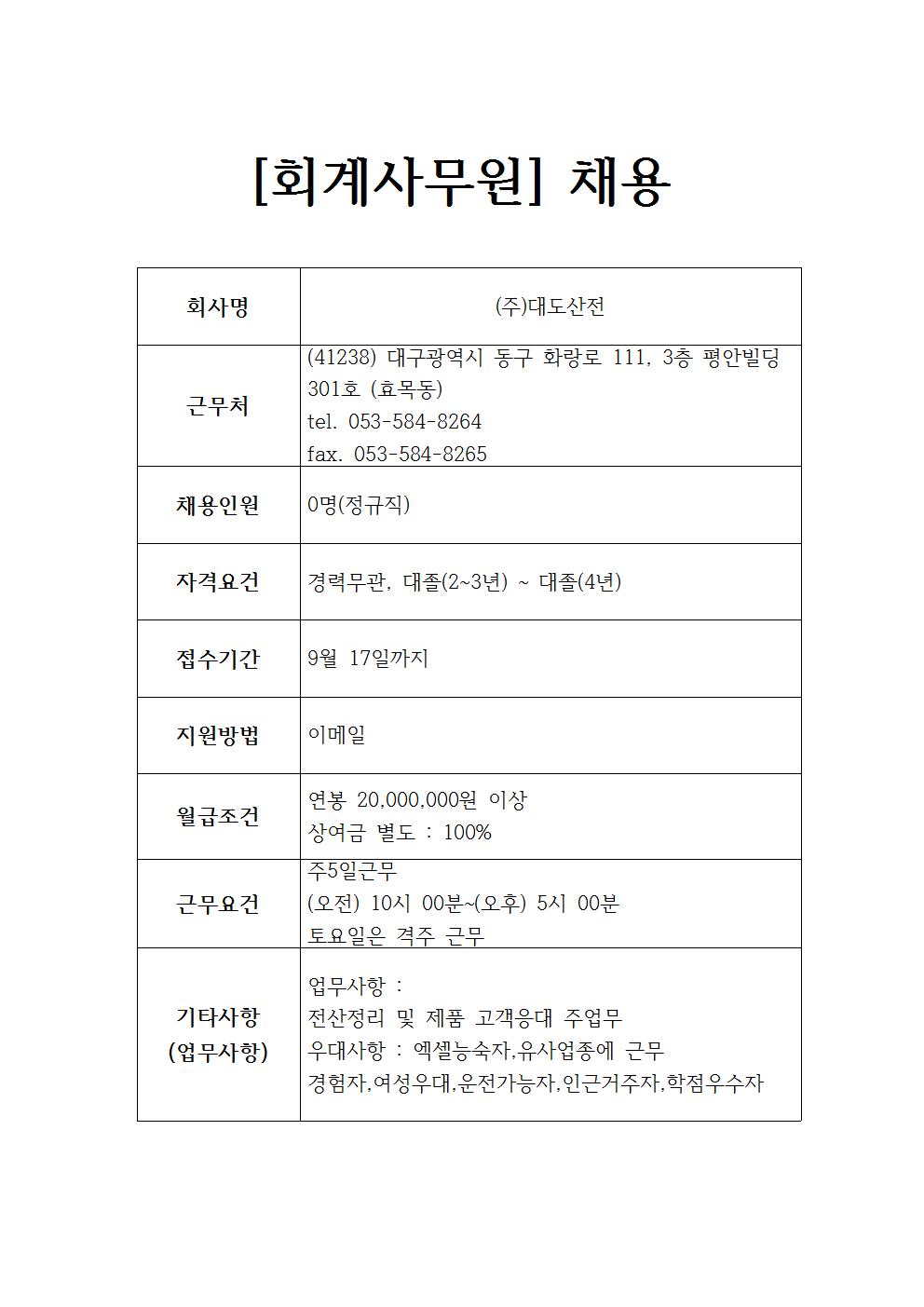 (주)대도산전 채용정보