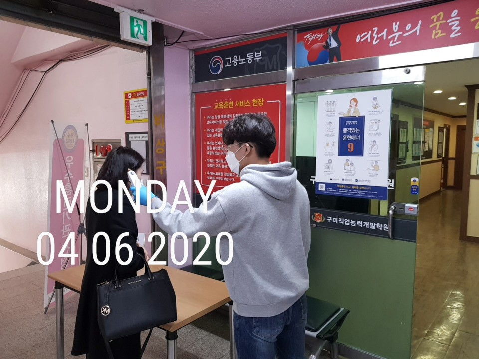 코로나19 확산방지 및 예방을 위해 구미직업능력개발학원은 최선을 다하고 있습니다