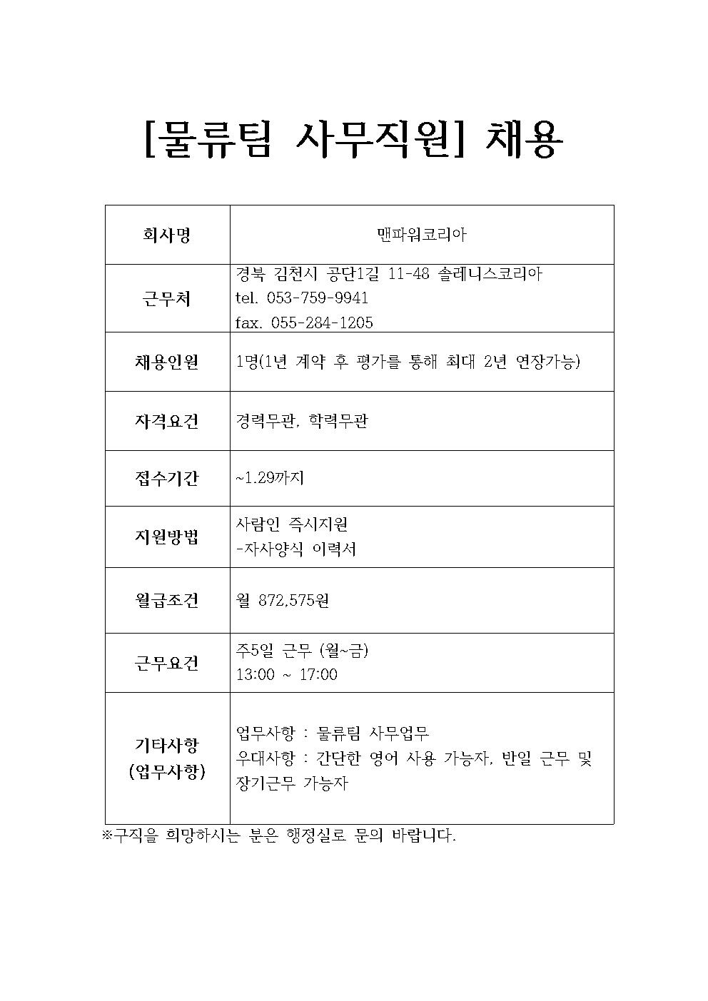 맨파워코리아 채용정보