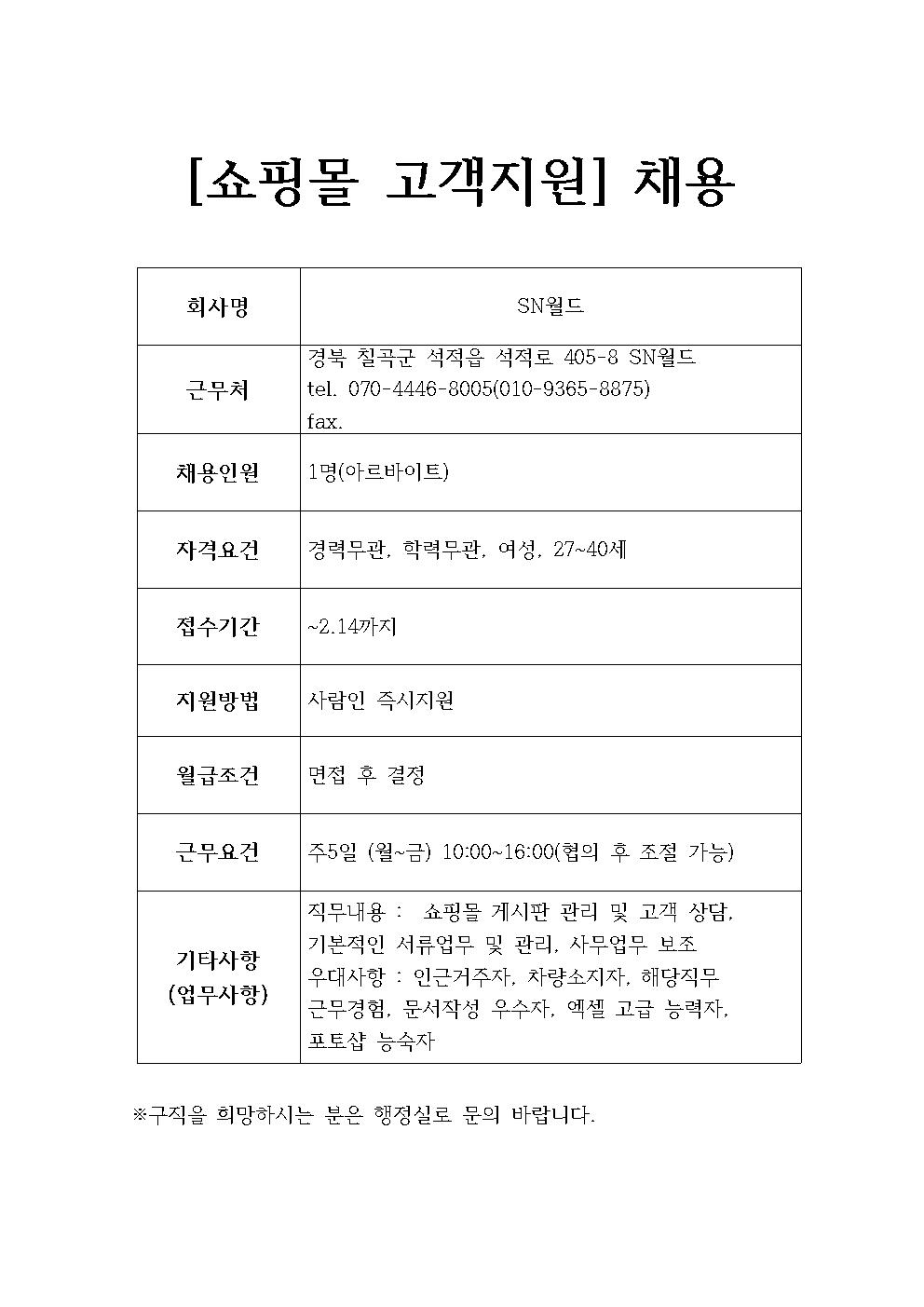 SN월드 채용정보