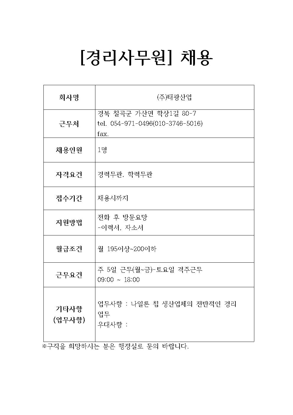 (주)태광산업 채용정보
