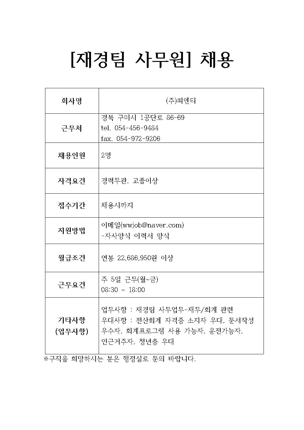 (주)피엔티 채용정보