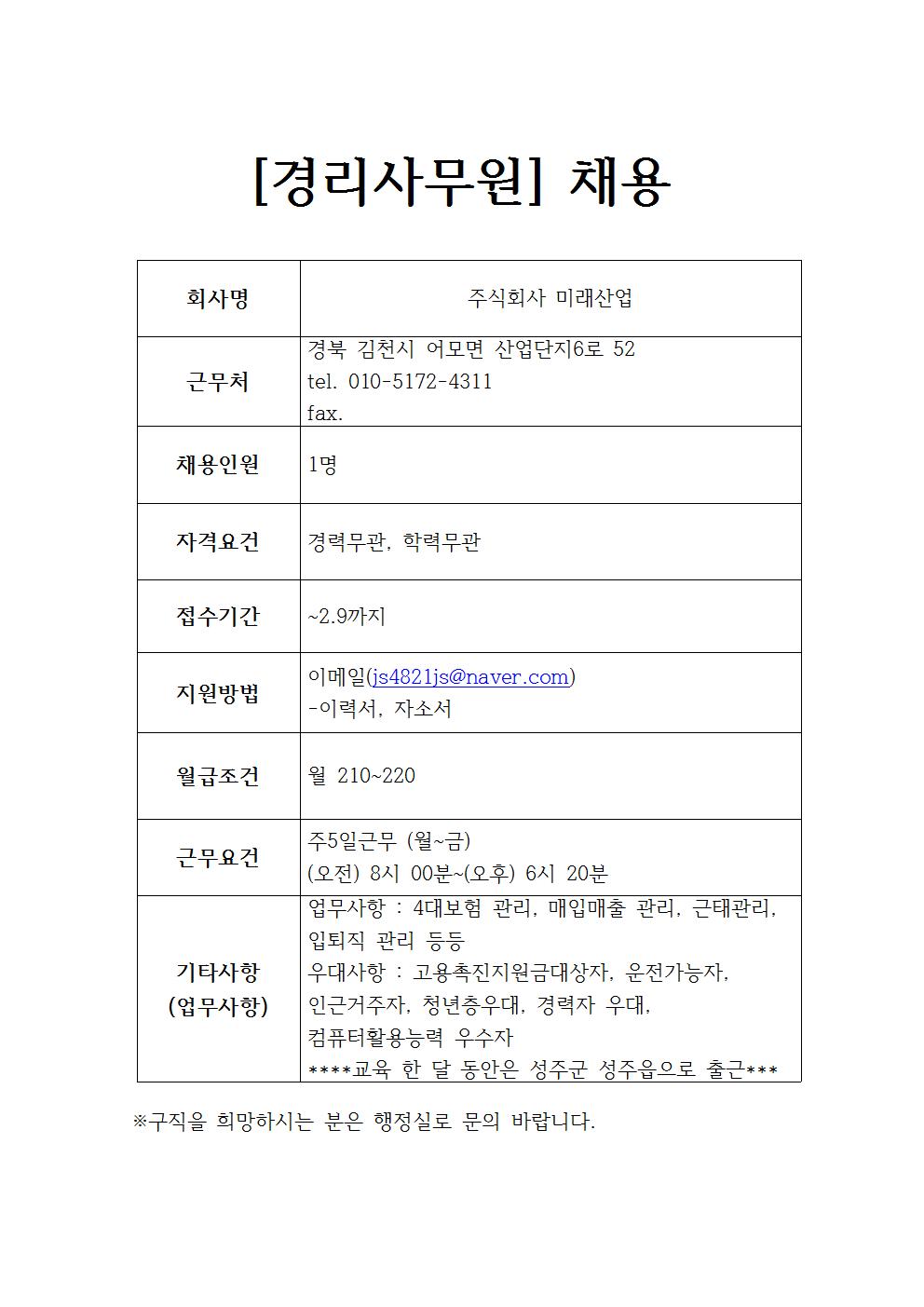 주식회사 미래산업 채용정보