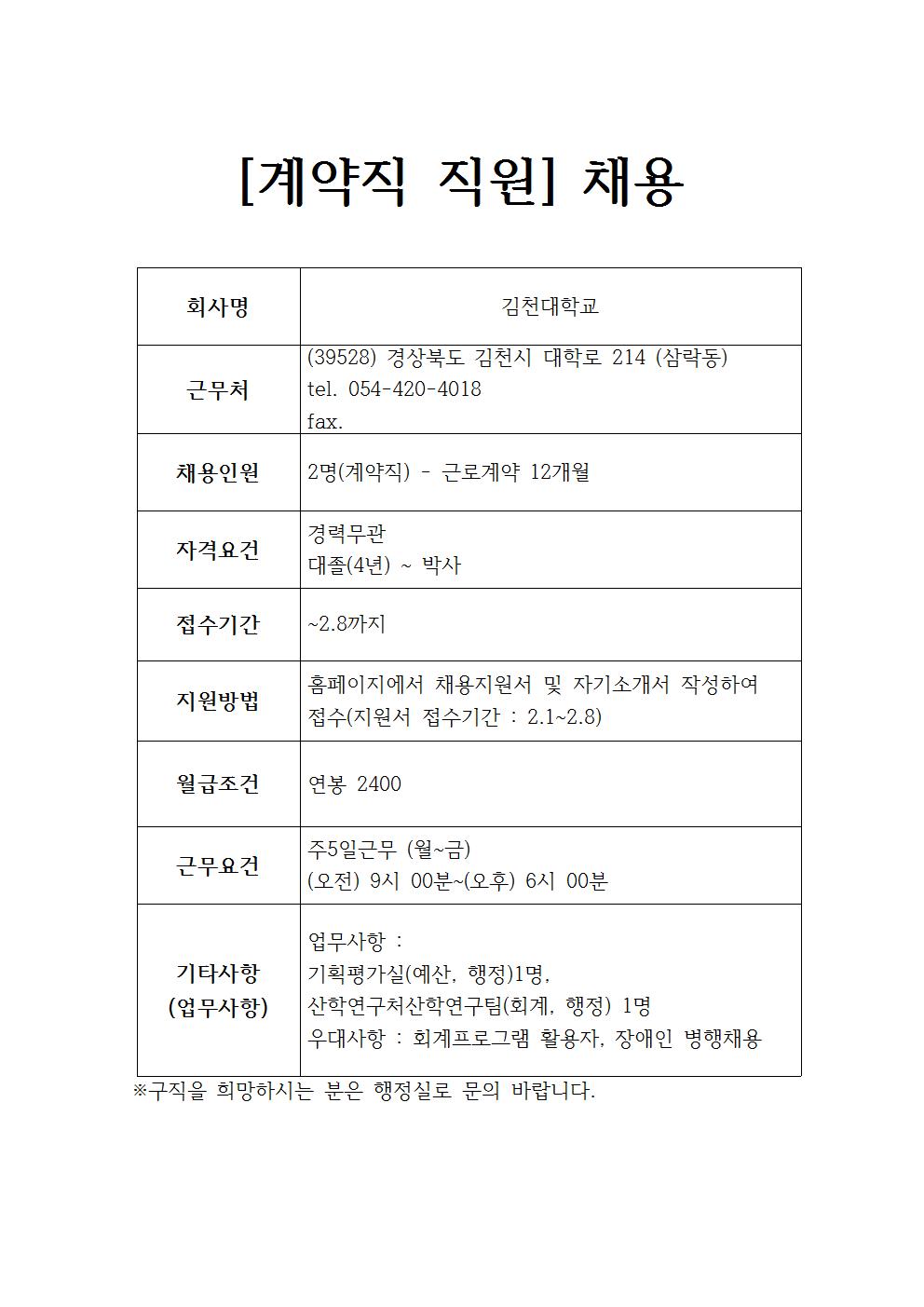 김천대학교 채용정보