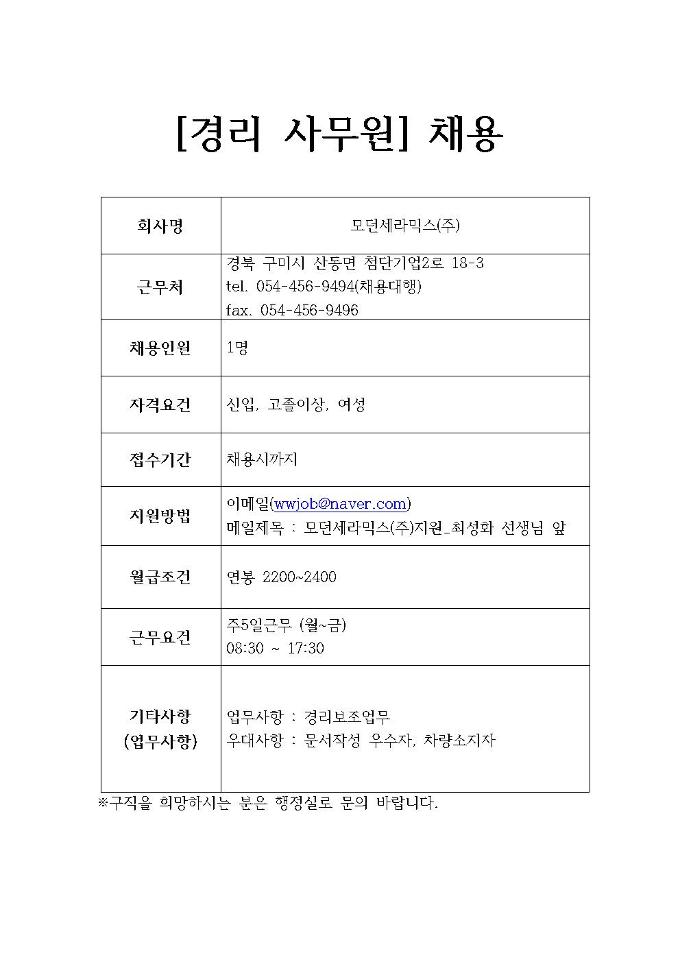 모던세라믹스(주) 채용정보