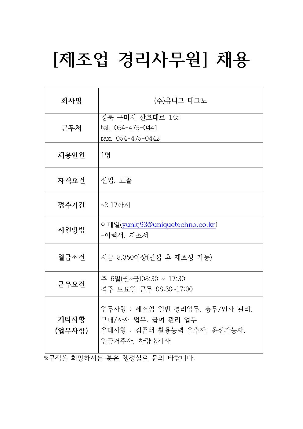 (주)유니크테크노 채용정보
