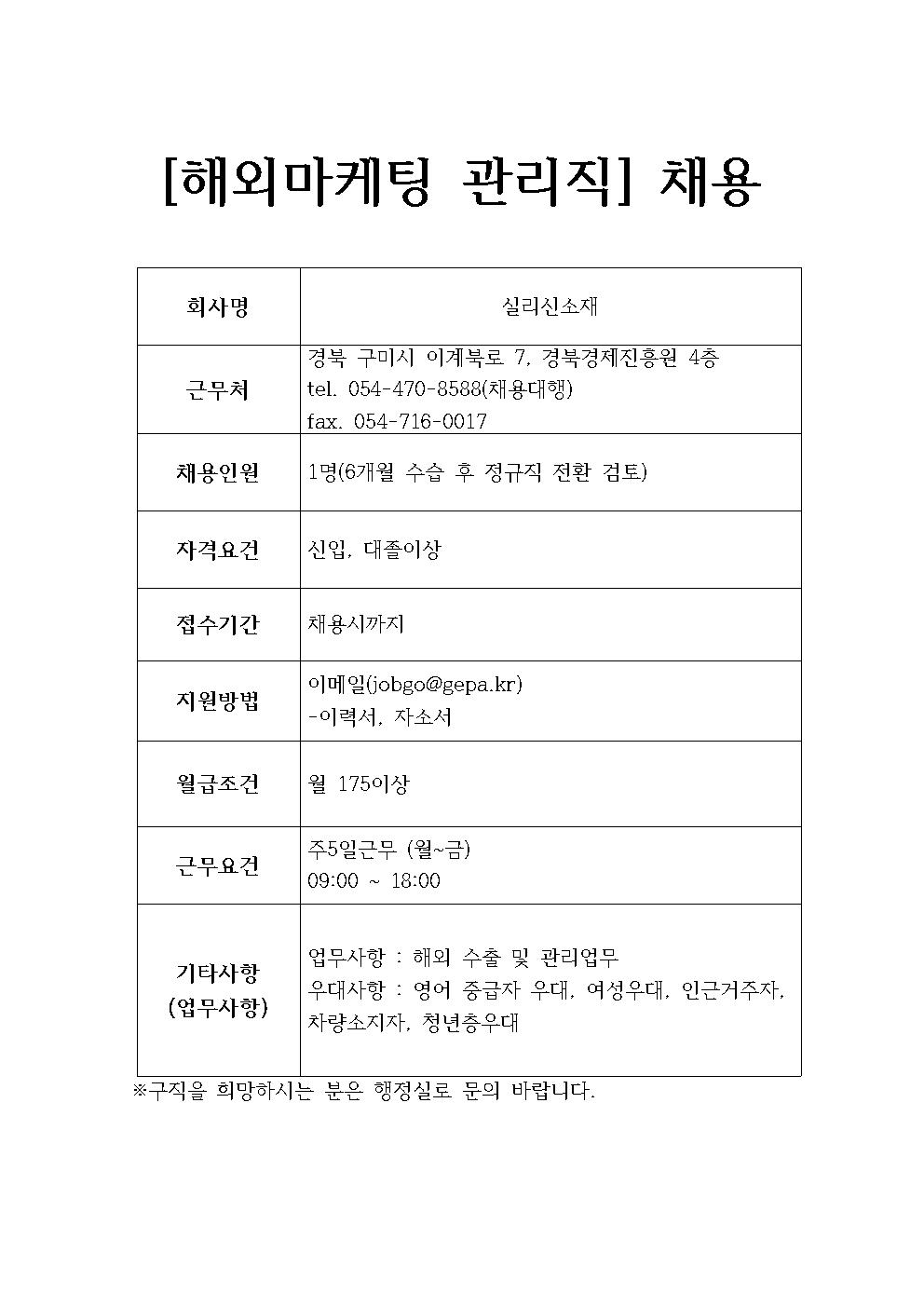 실리신소재 채용정보