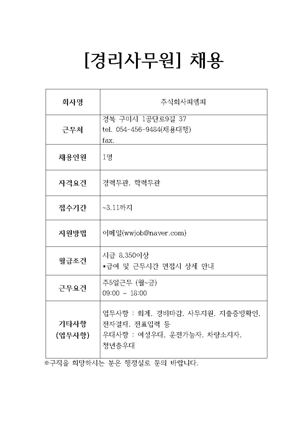 주식회사피엠피 채용정보