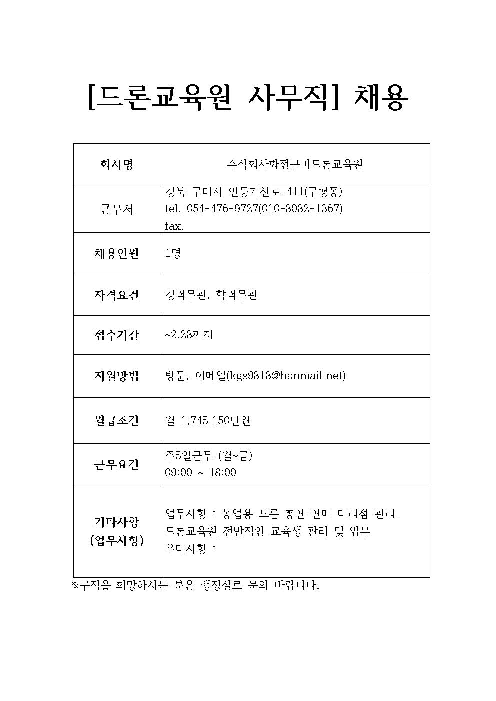 주식회사화전구미드론교육원 채용정보