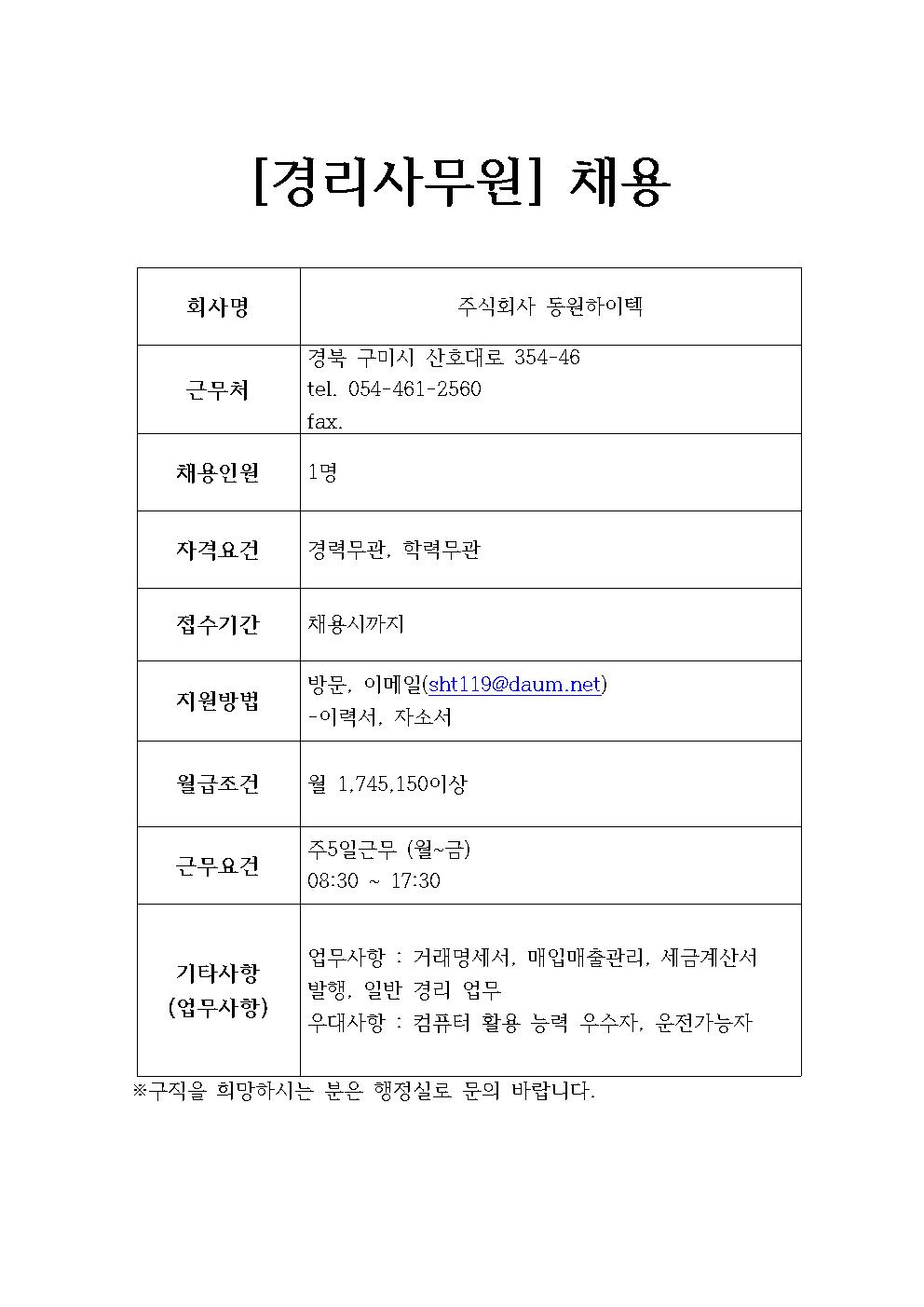 주식회사 동원하이텍 채용정보