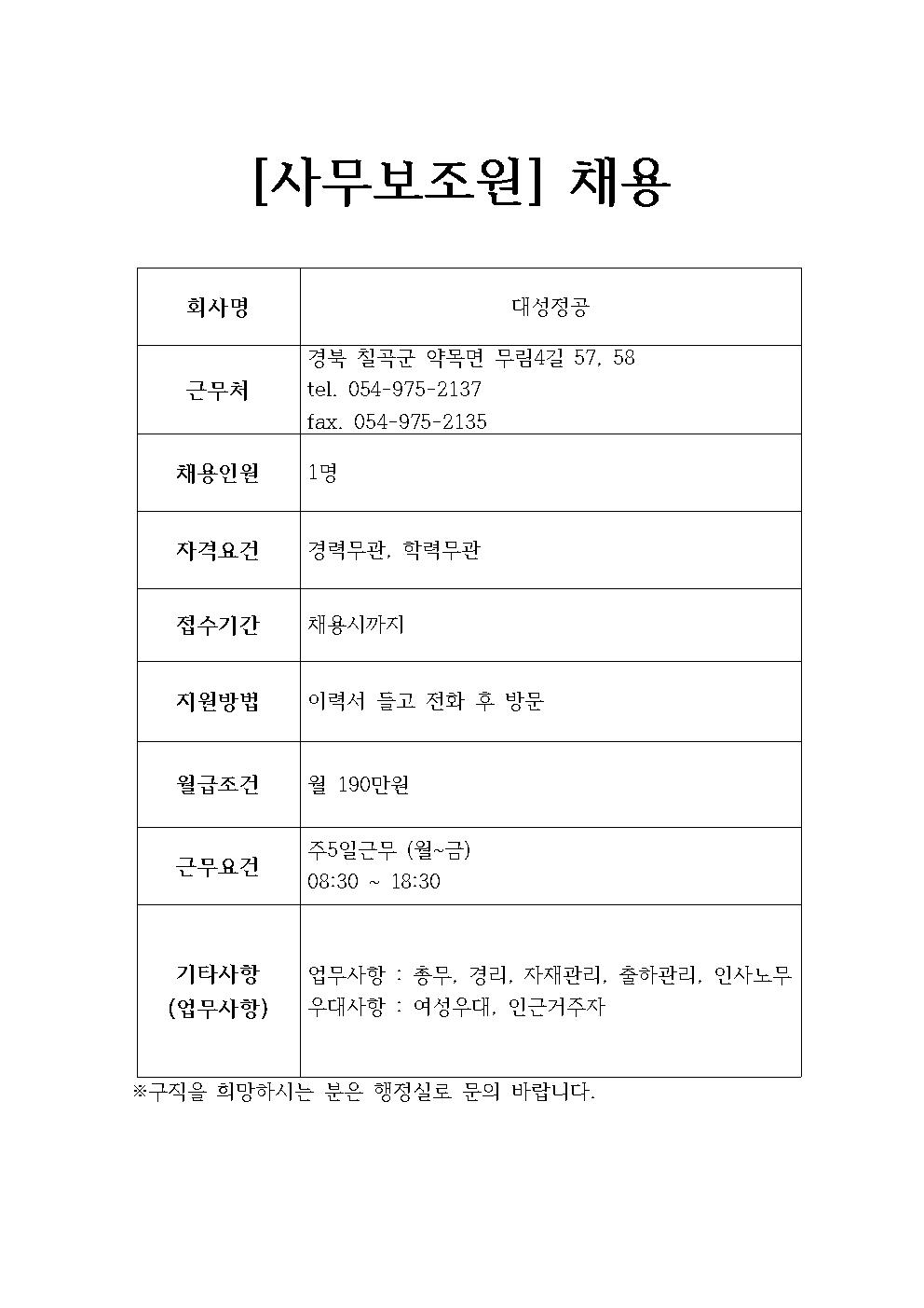 대성정공 채용정보