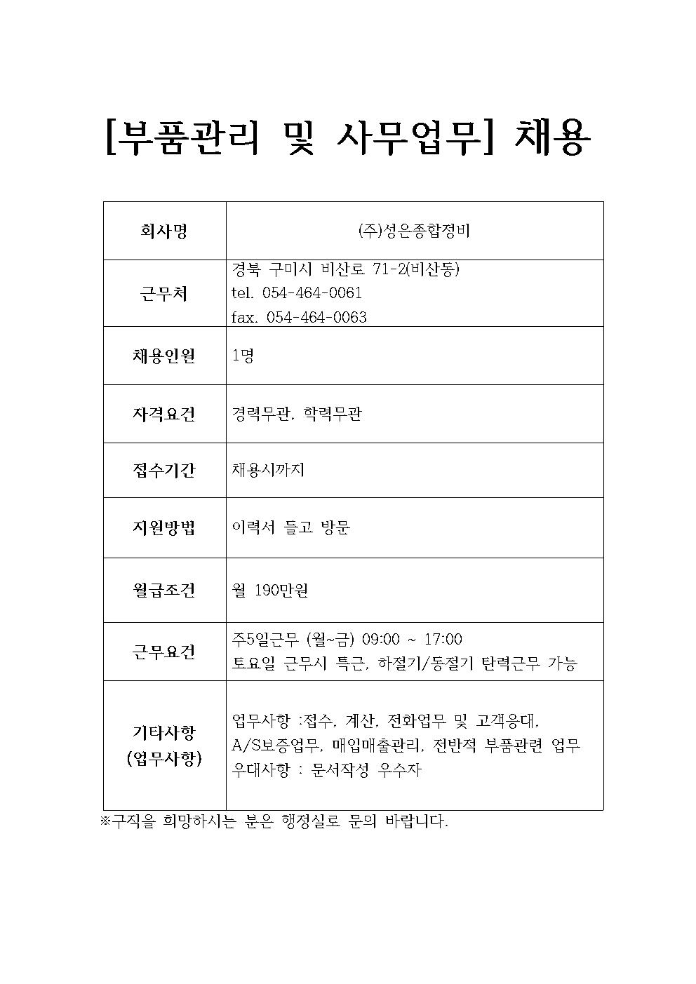 (주)성은종합정비 채용정보