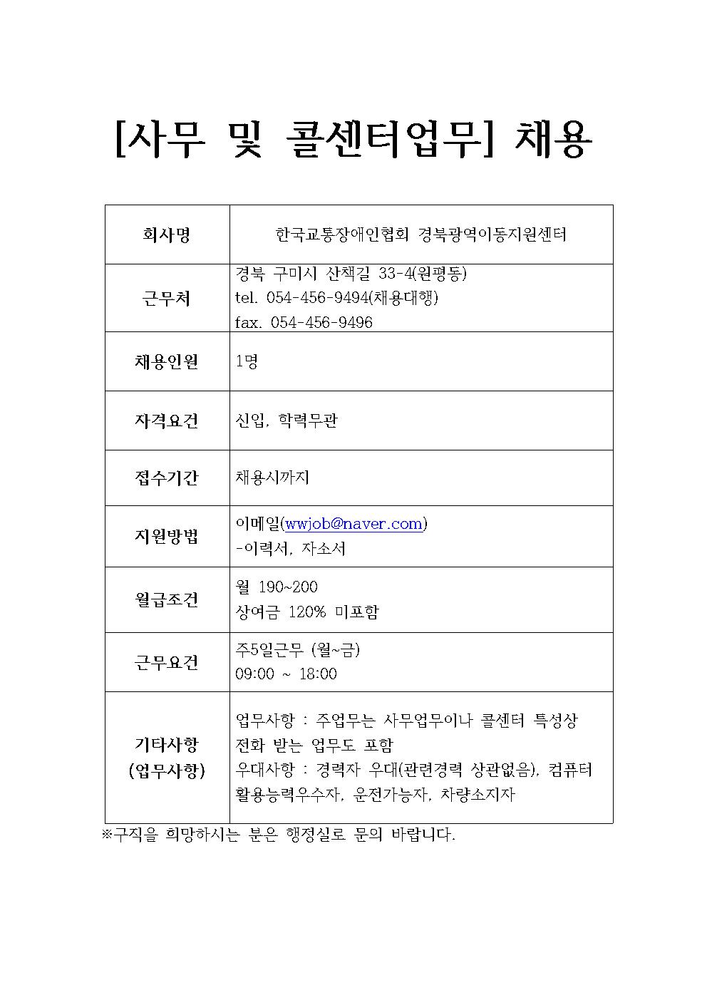 한국교통장애인협회 경북광역이동지원센터 채용정보