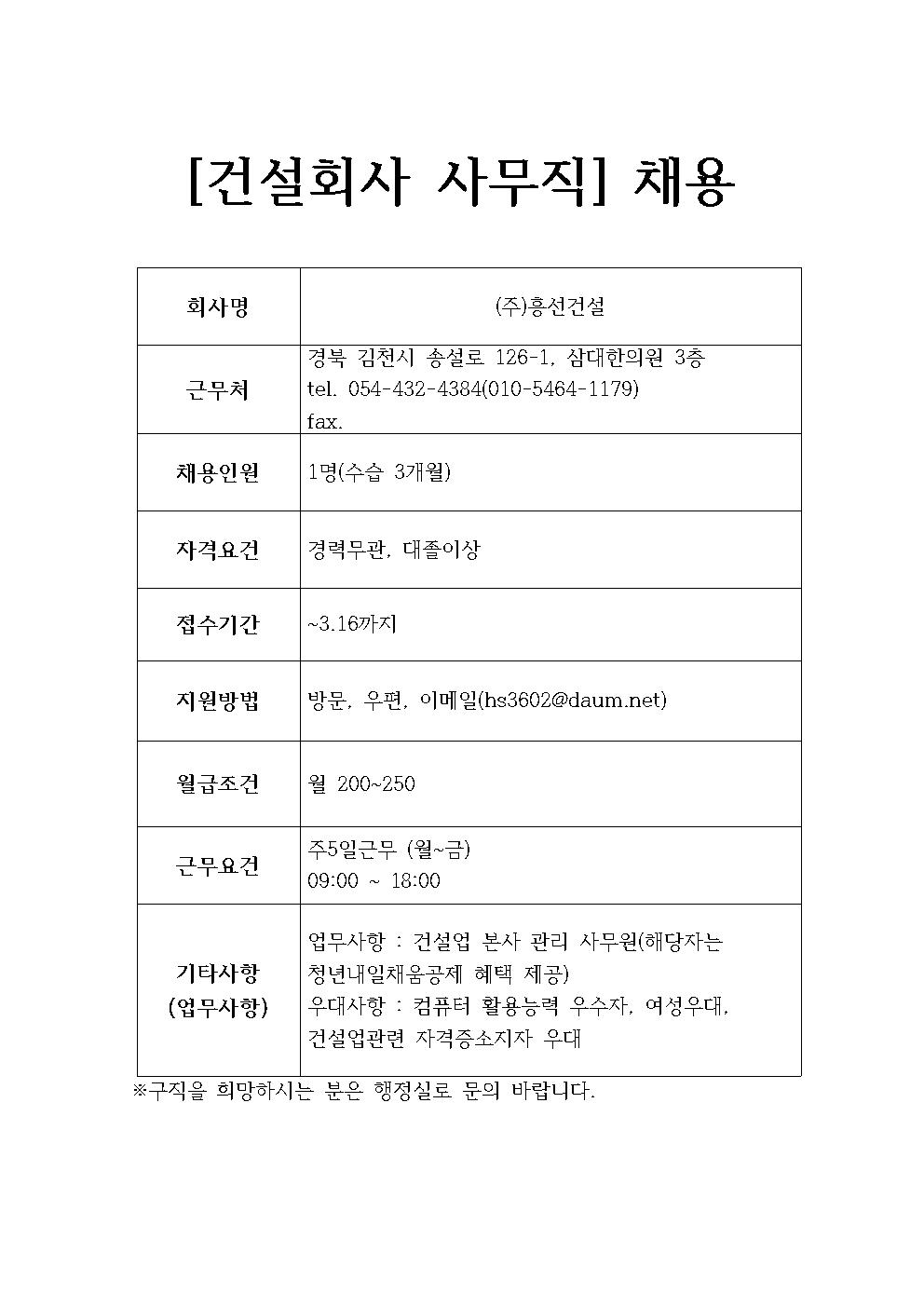 (주)흥선건설 채용정보