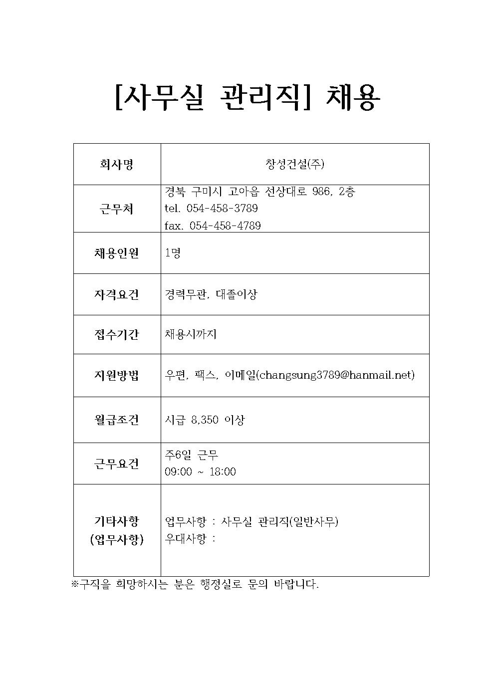 창성건설(주) 채용정보