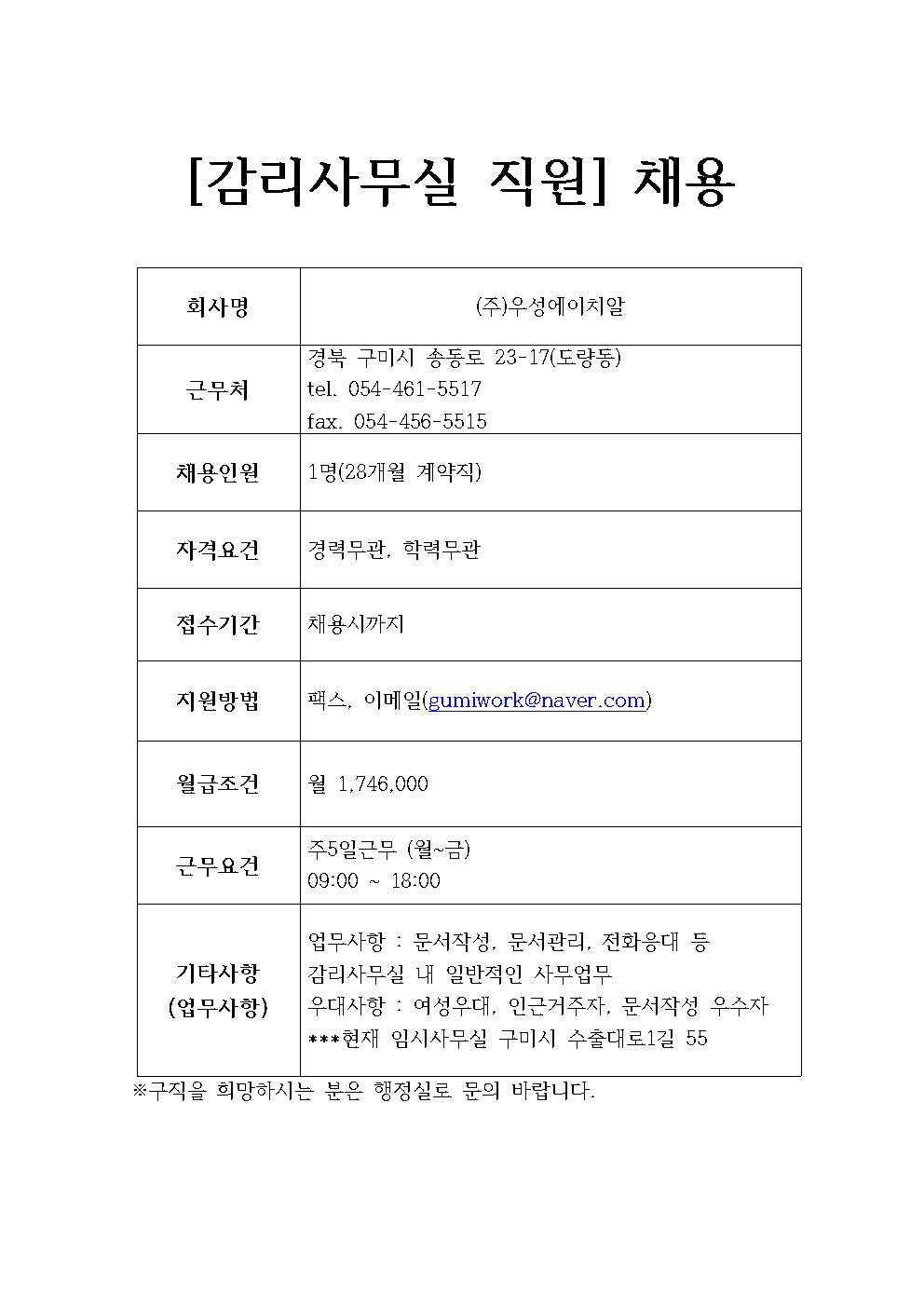 (주)우성에이치알 채용정보