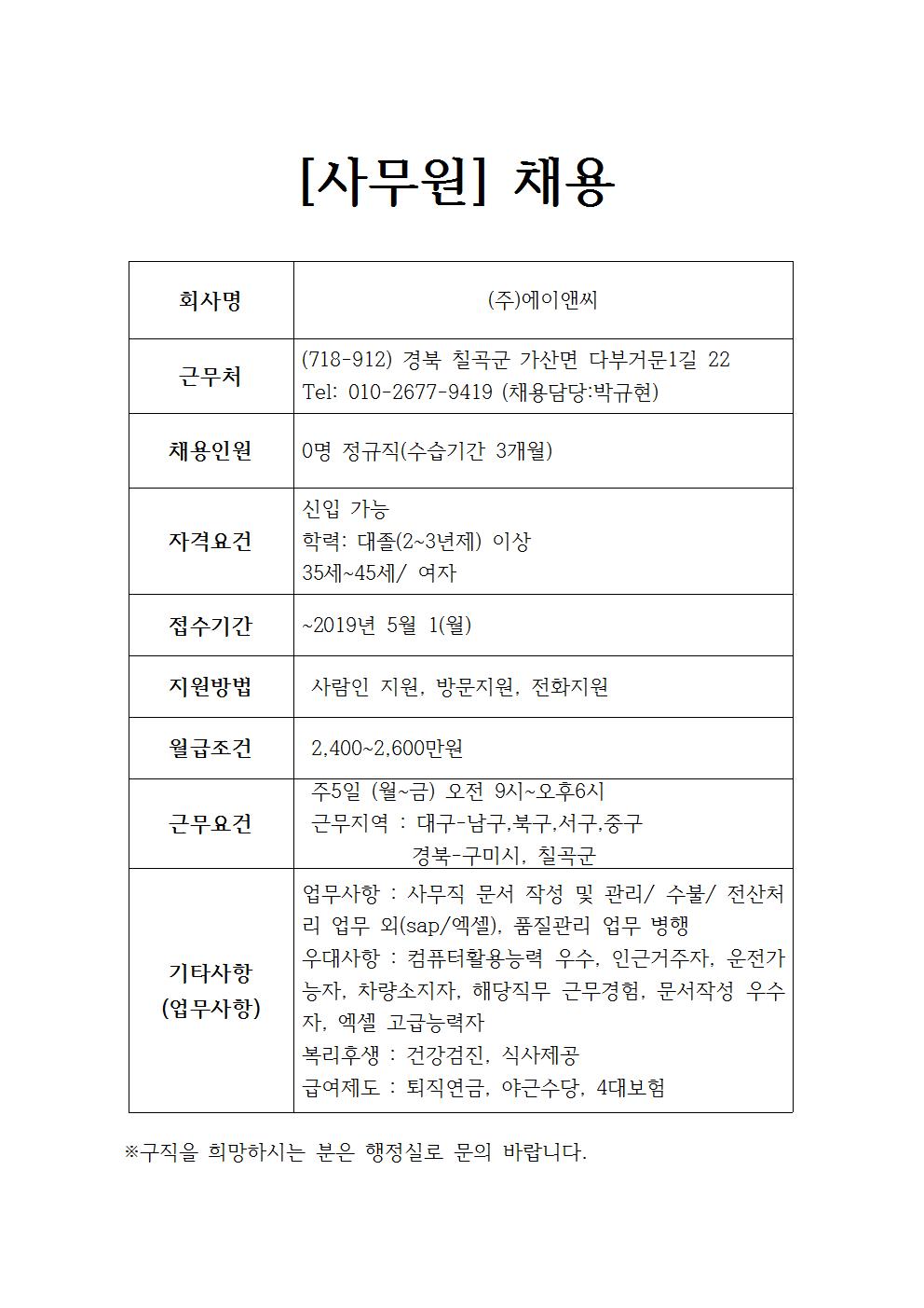 (주)에이앤씨 채용정보