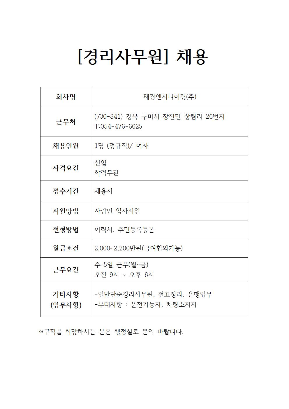 태광엔지니어링 채용공고
