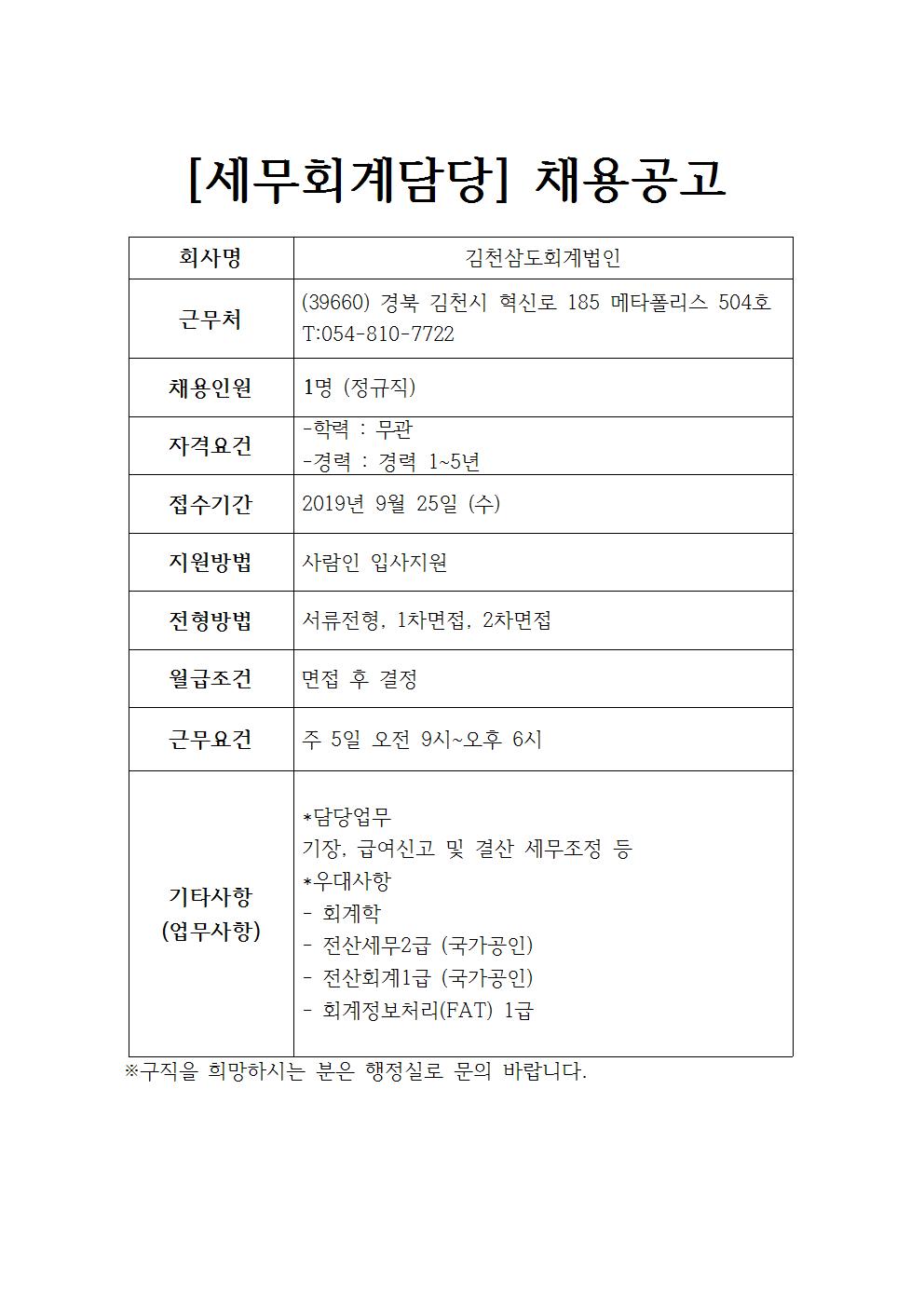 김천삼도회계법인 채용공고