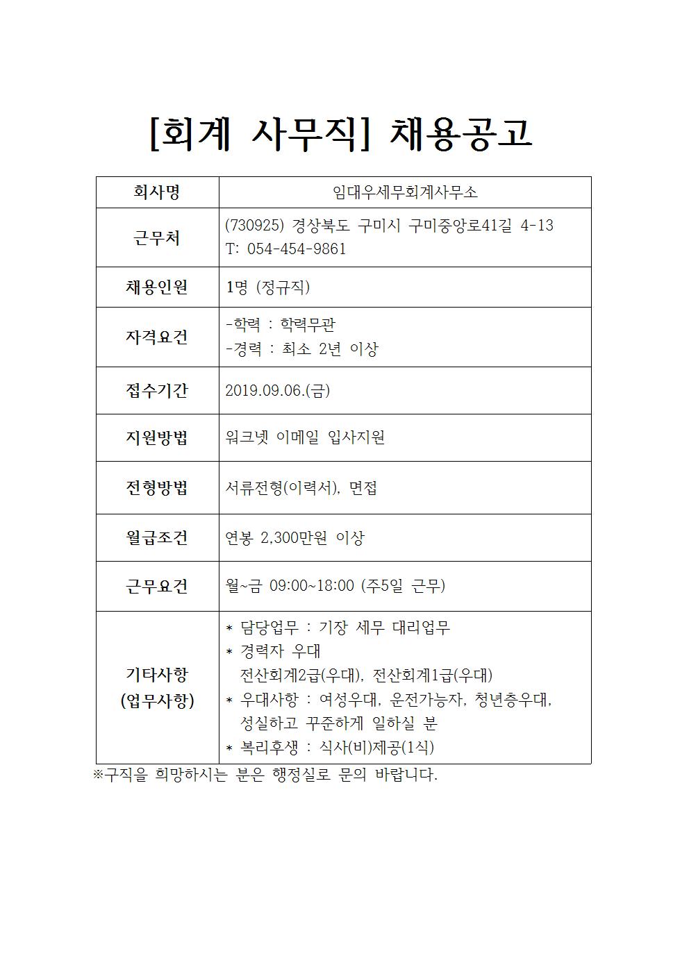 임대우 세무회계 사무소 채용공고
