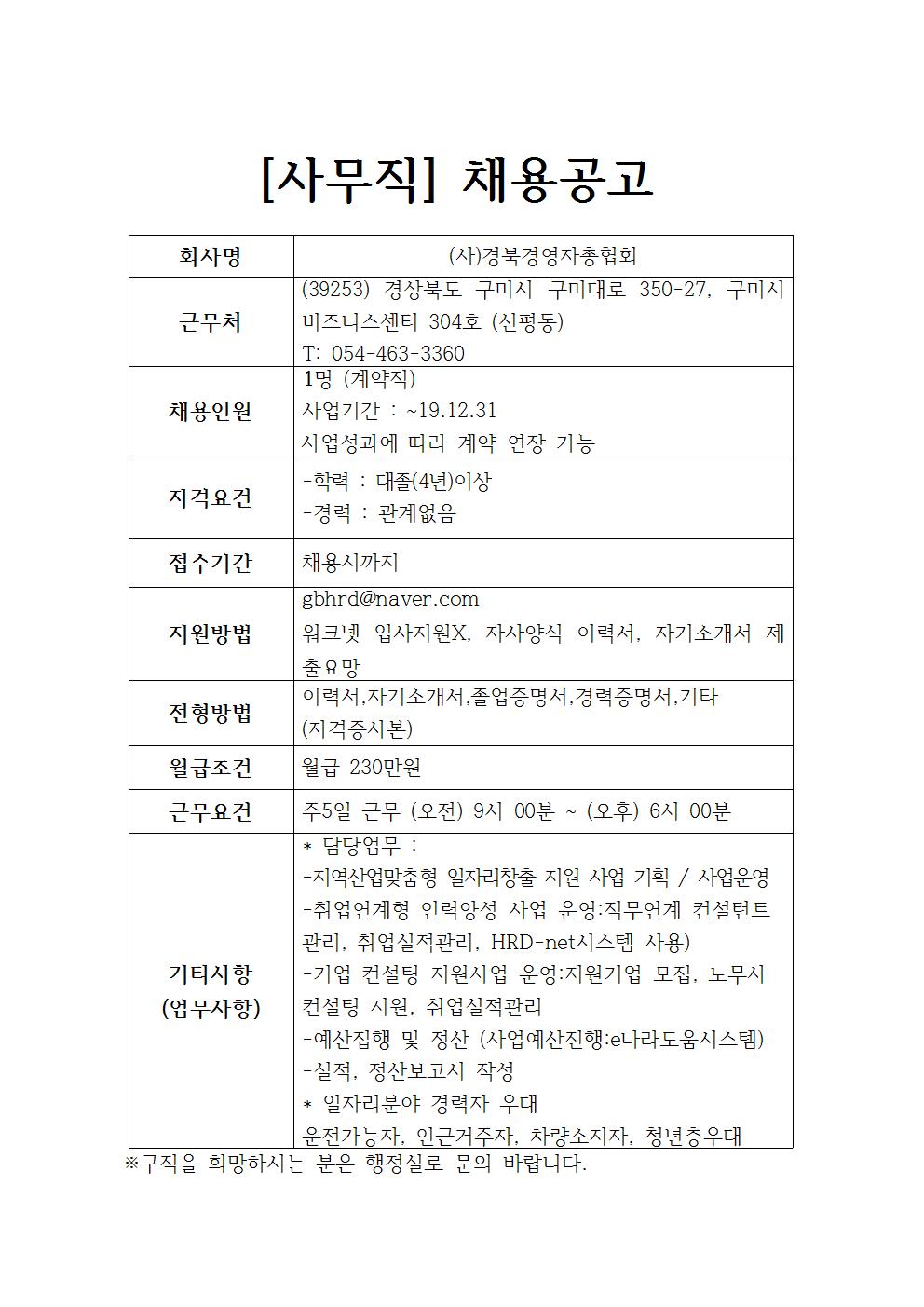(사)경북경영자총협회 채용공고