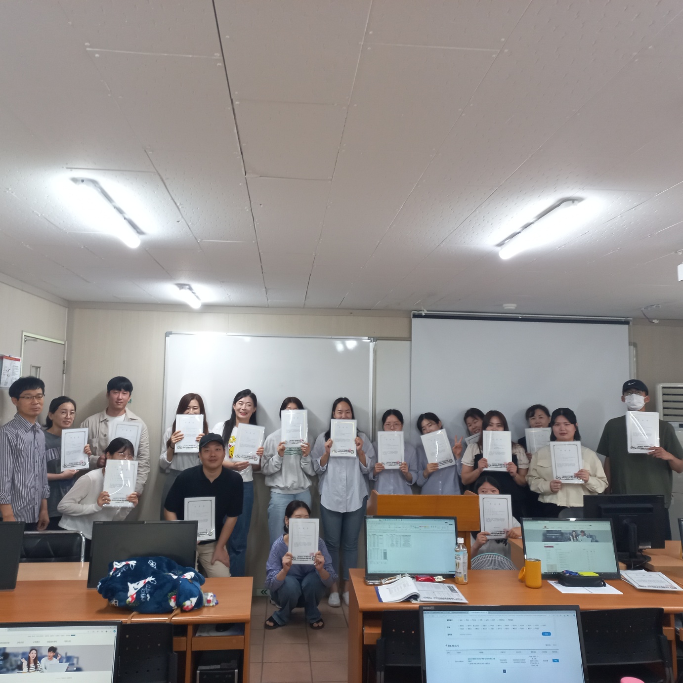 컴퓨터활용능력2급 취득과정(필기+실기) 과정의 수료를 축하드립니다. 지난 8월 29일 부터 9월 25일까지 한달 여간 많이들 노력하셨는데, 모두모두 자격증도 따시고 취업까지! 한번에 합격 되시길 응원합니다! 고생하셨어요^^