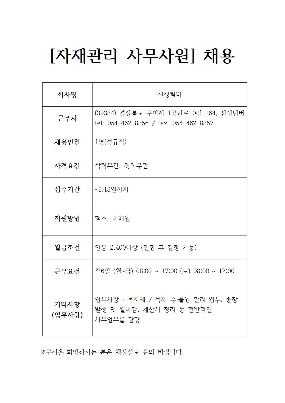 신성팀버 채용정보