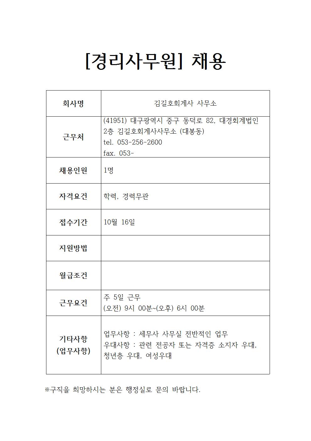 김길호회계사 사무소 채용정보