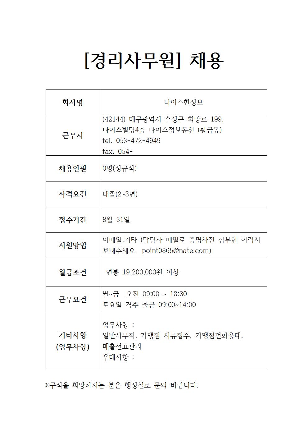 나이스한정보 채용정보