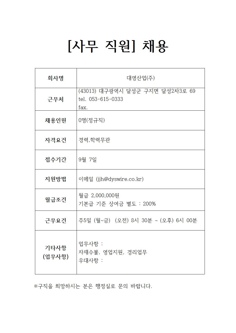 대영산업(주) 채용정보