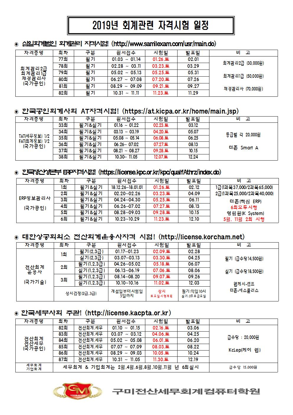 2019년 세무, 회계 관련 자격시험 일정입니다.