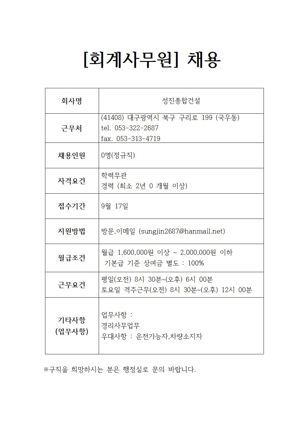성진종합건설 채용정보