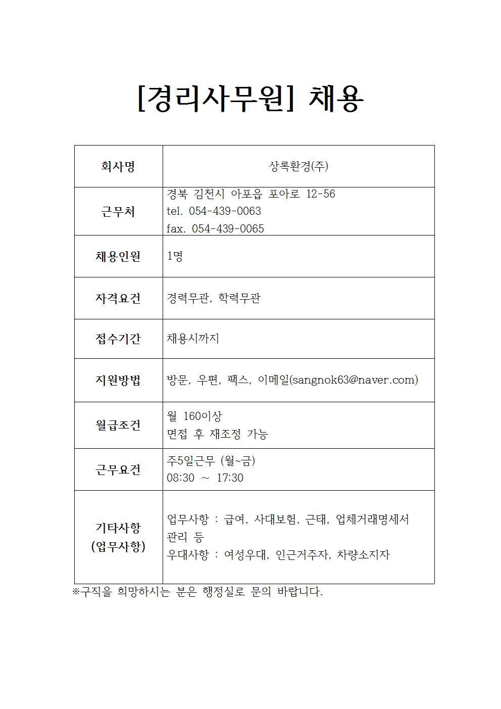 상록환경(주) 채용정보