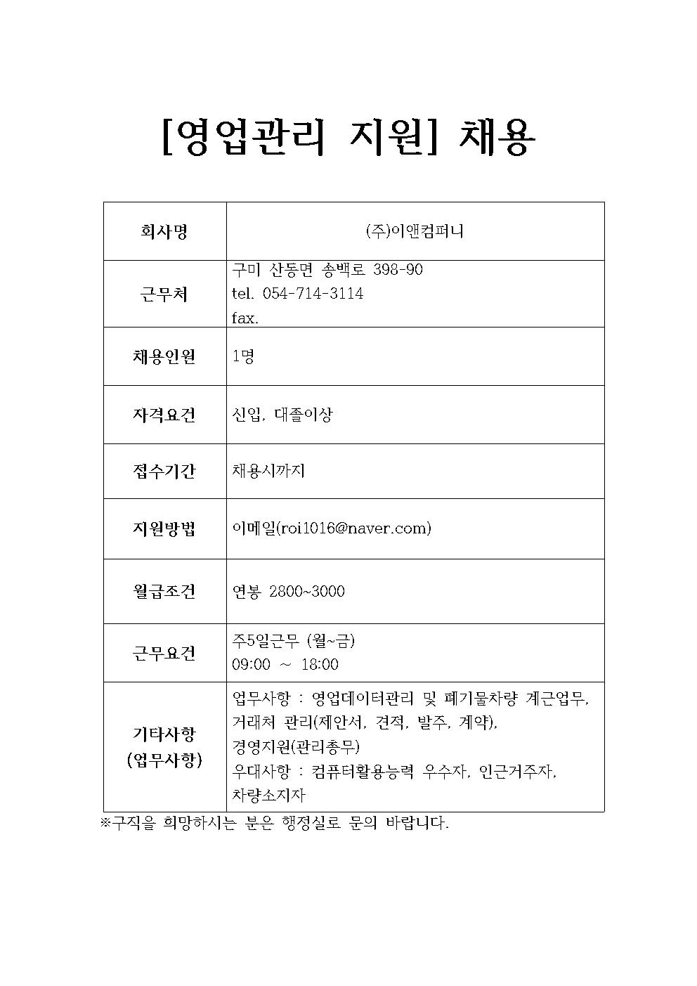 (주)이앤컴퍼니 채용정보
