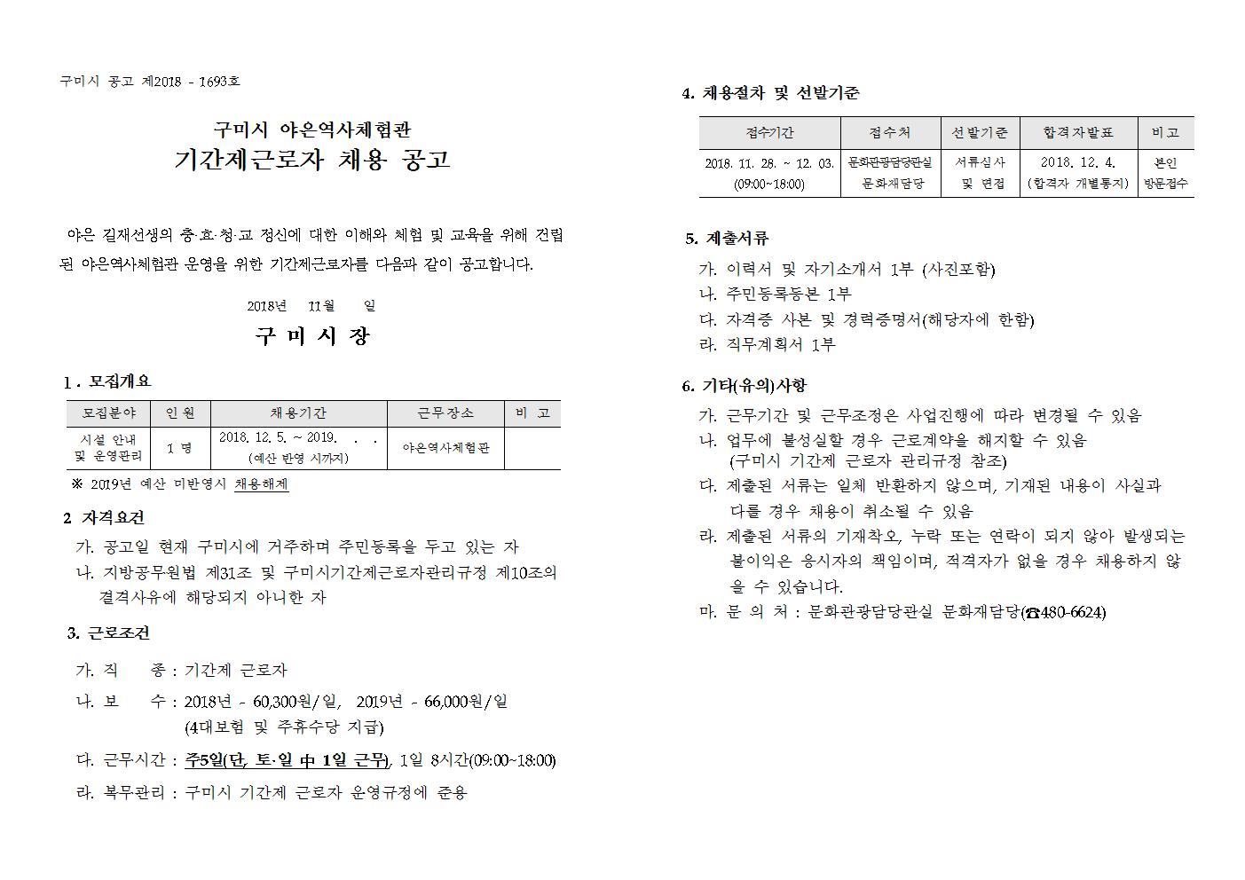 야은역사체험관 기간제근로자 채용정보