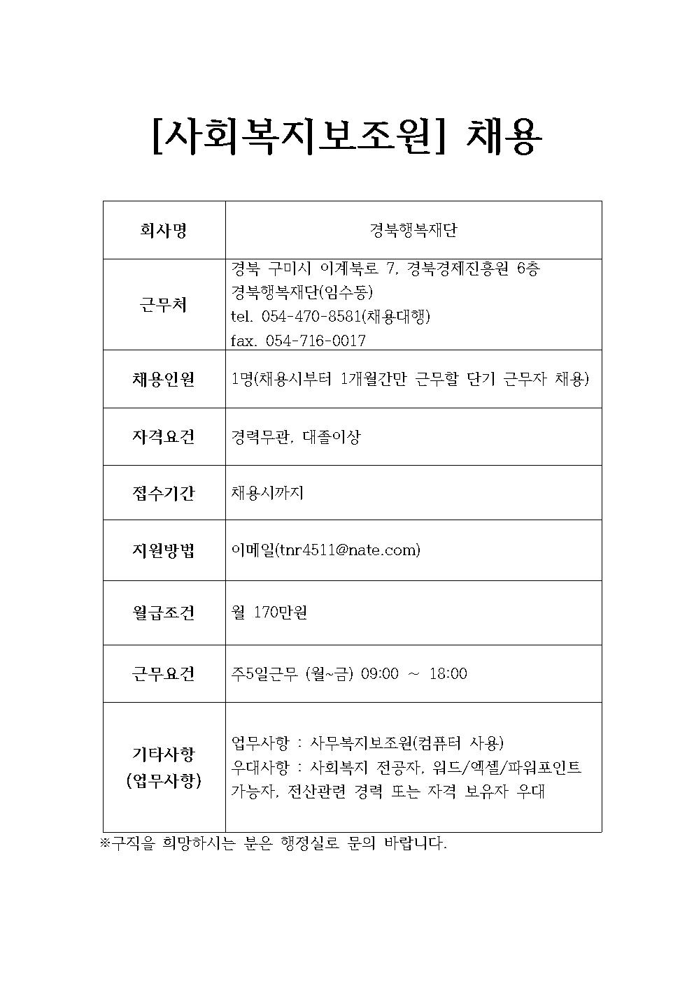 경북행복재단 채용정보