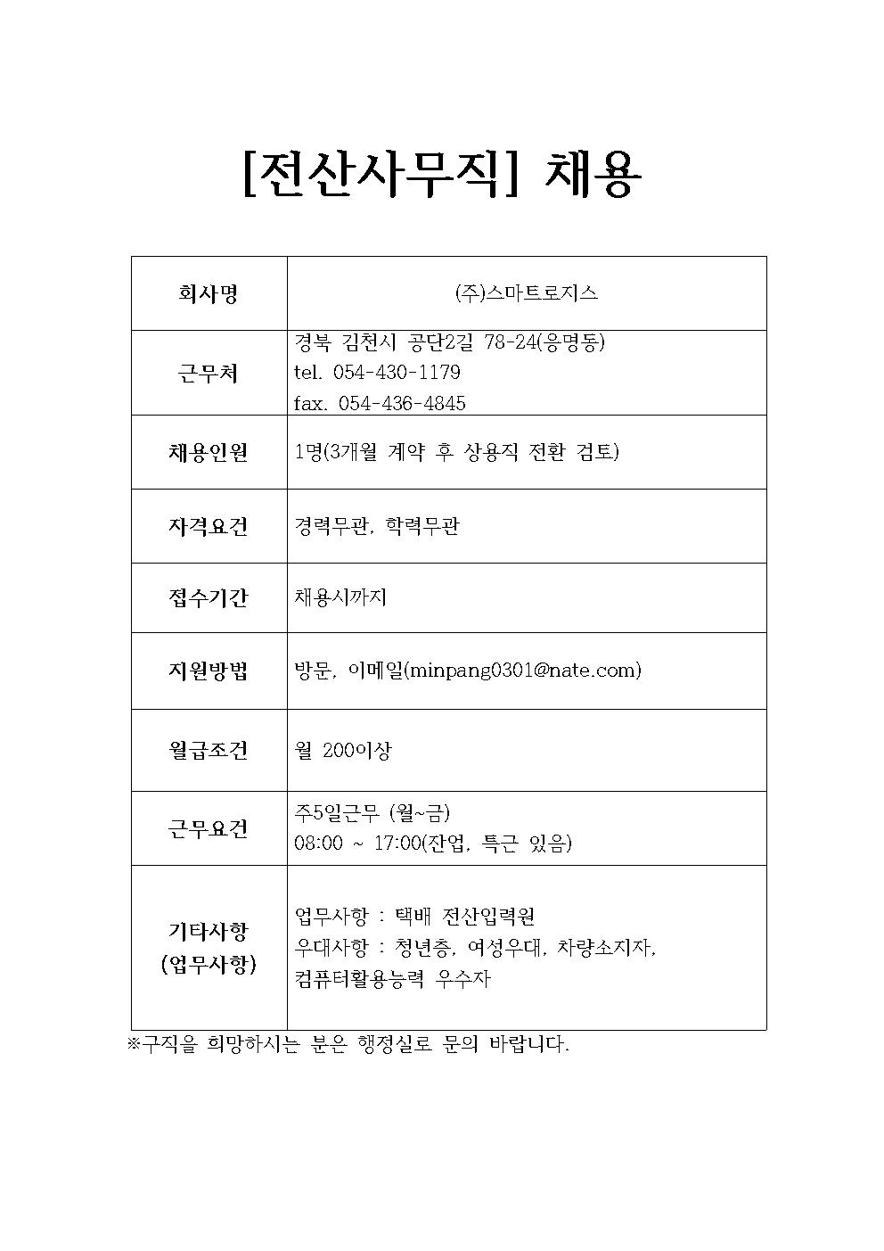 (주)스마트로지스 채용정보