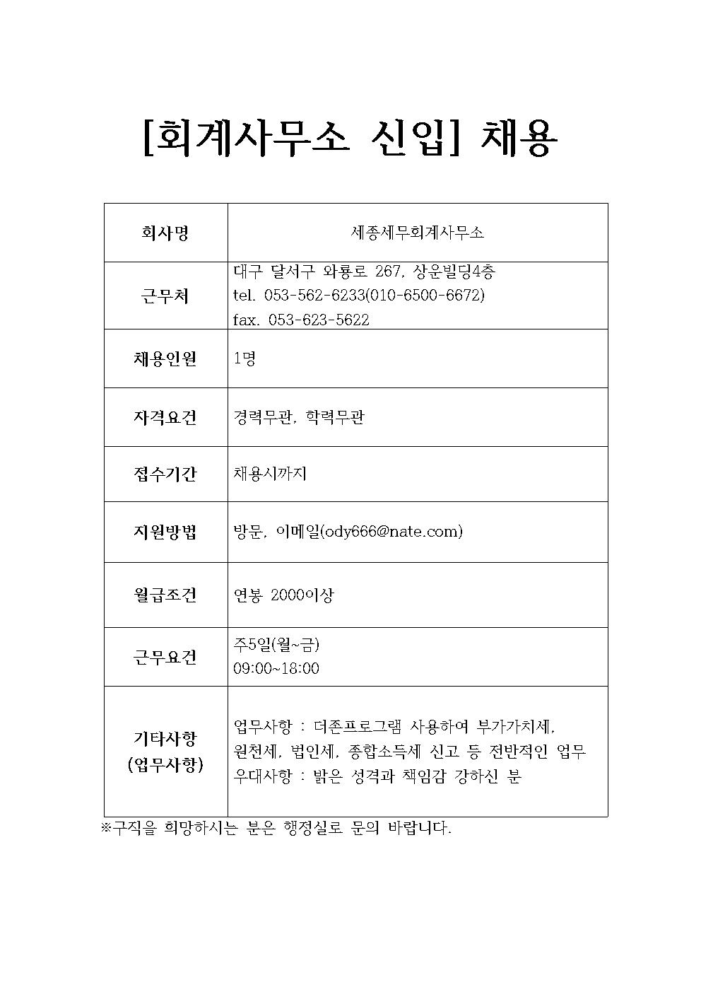세종세무회계사무소 채용정보