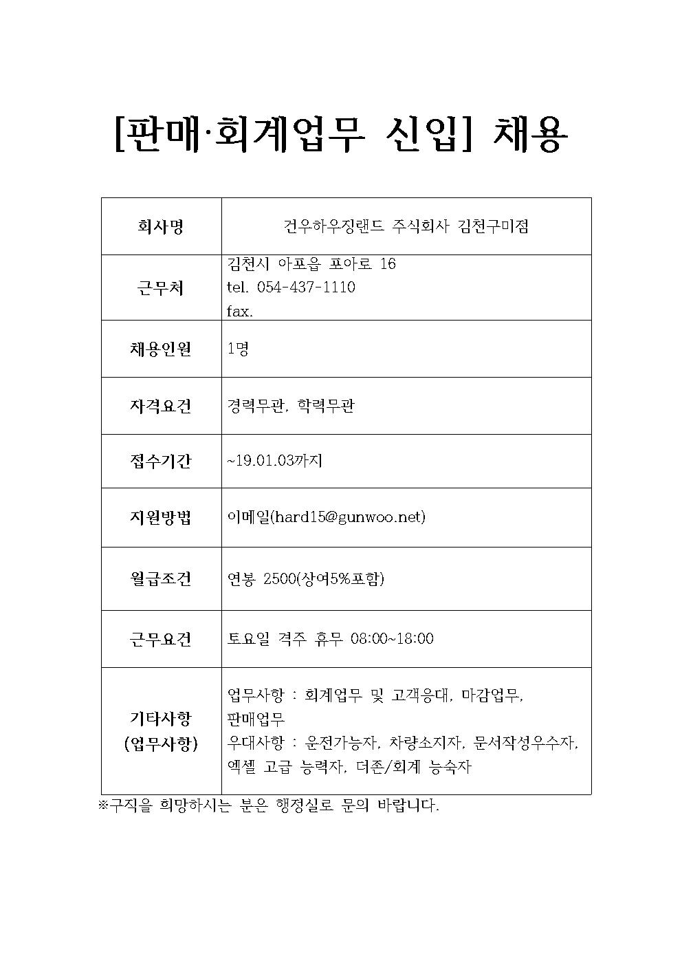 건우하우징랜드 주식회사 김천구미점 채용정보