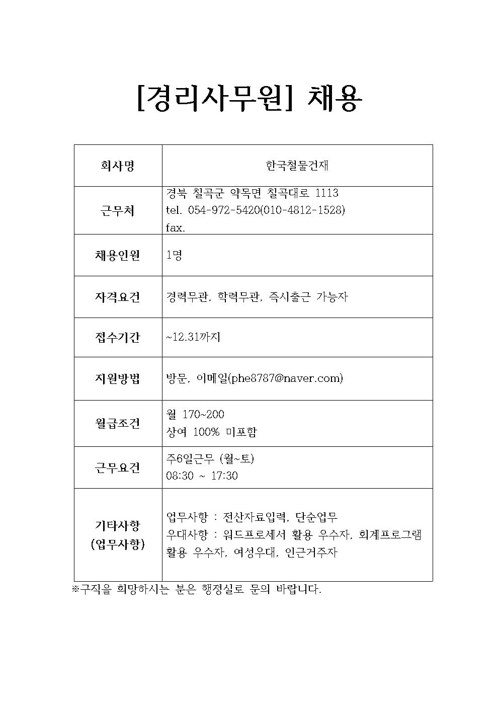 한국철물건재 채용정보