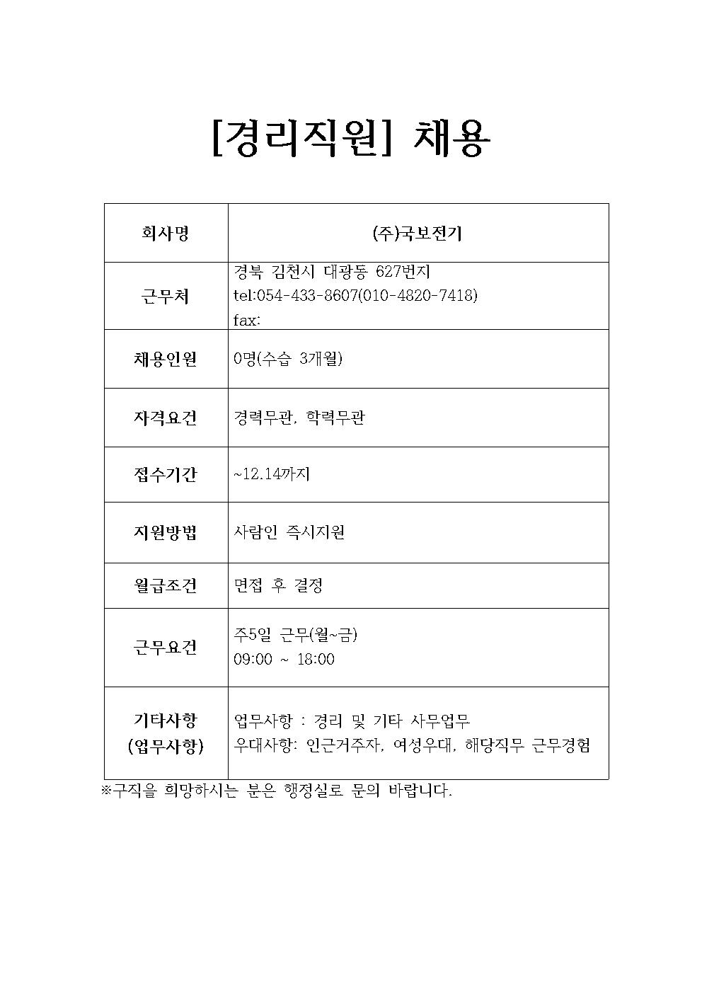 (주)국보전기 채용정보