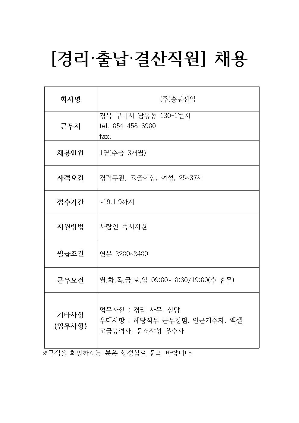 (주)송림산업 채용정보