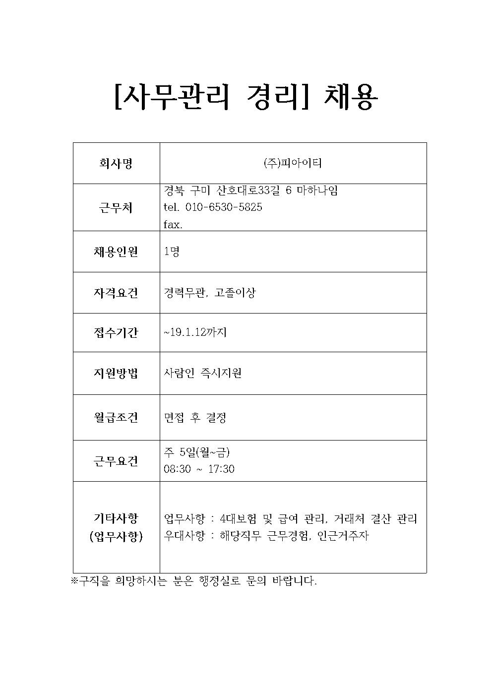 (주)피아이티 채용정보