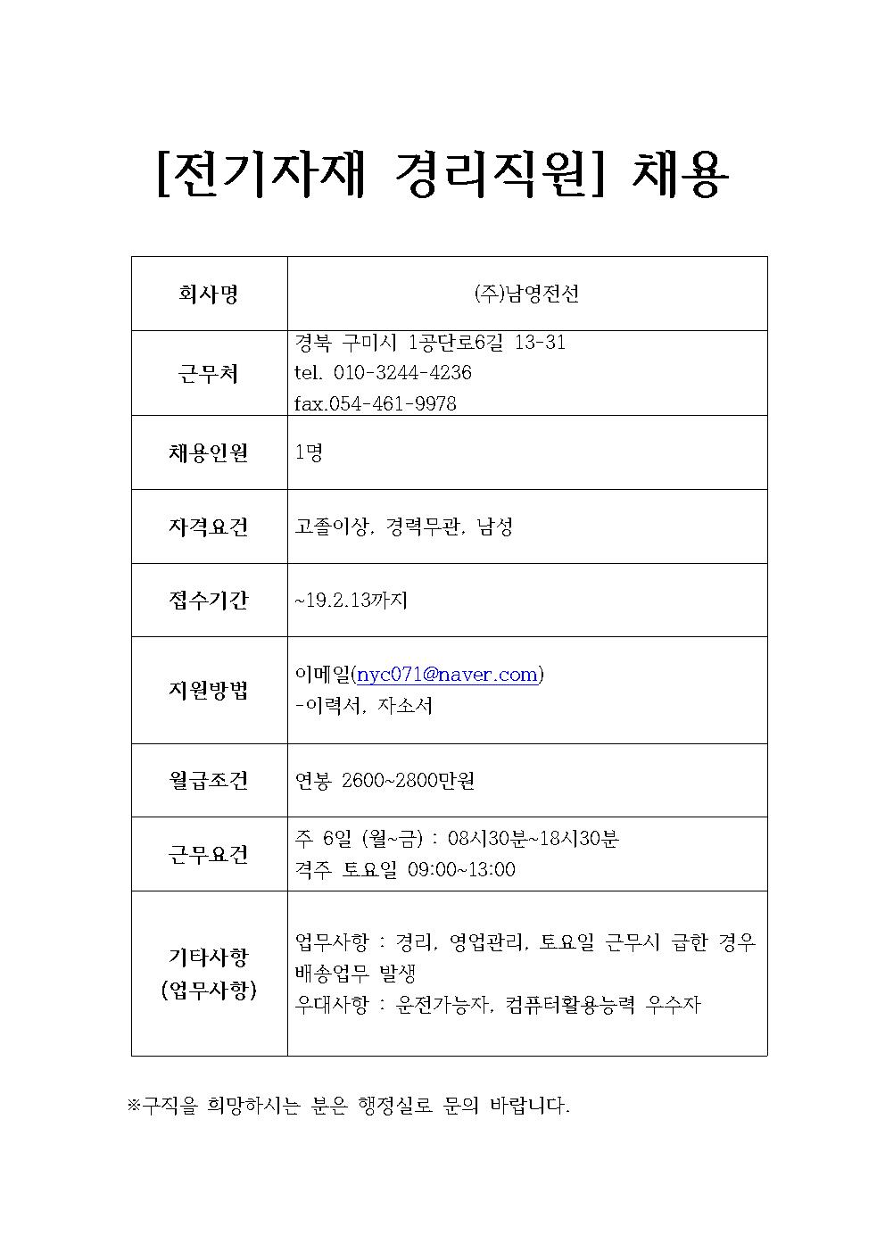 (주)남영전선 채용정보