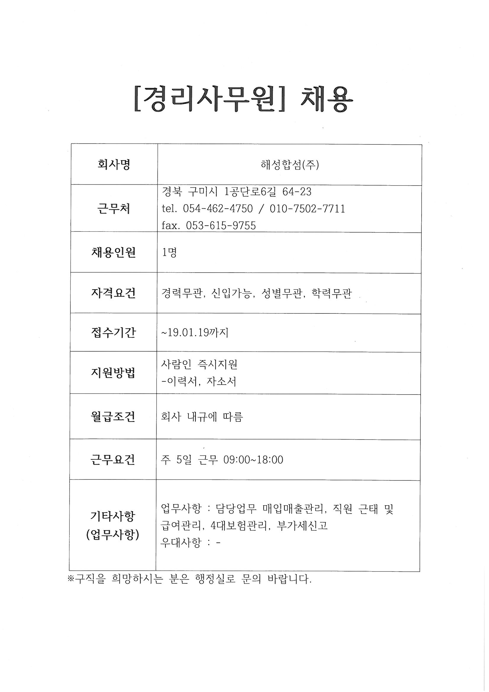 해성합섬(주) 채용정보
