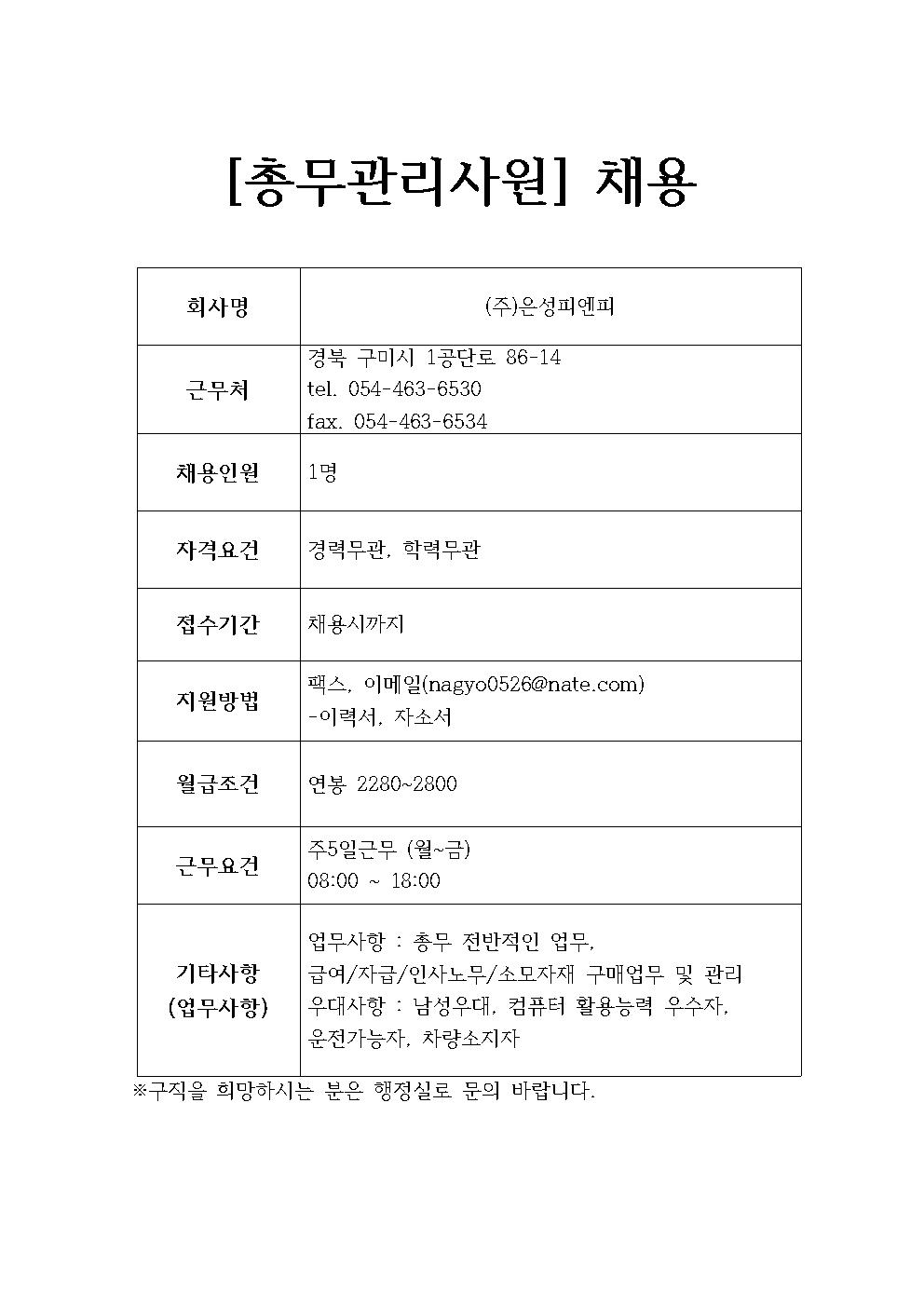 (주)은성피엔피 채용정보