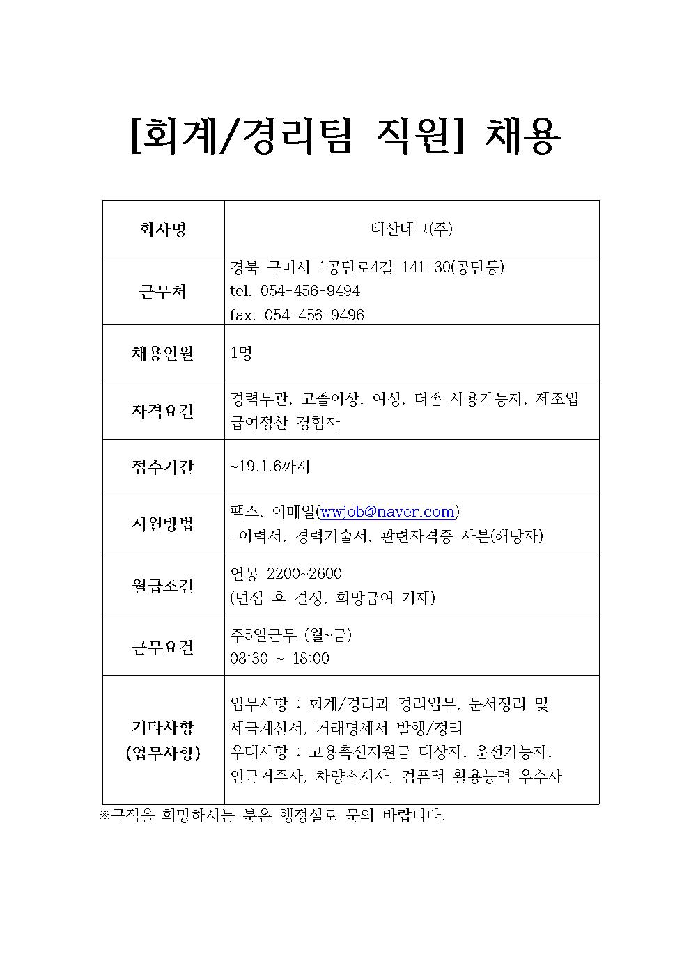 태산테크(주) 채용정보